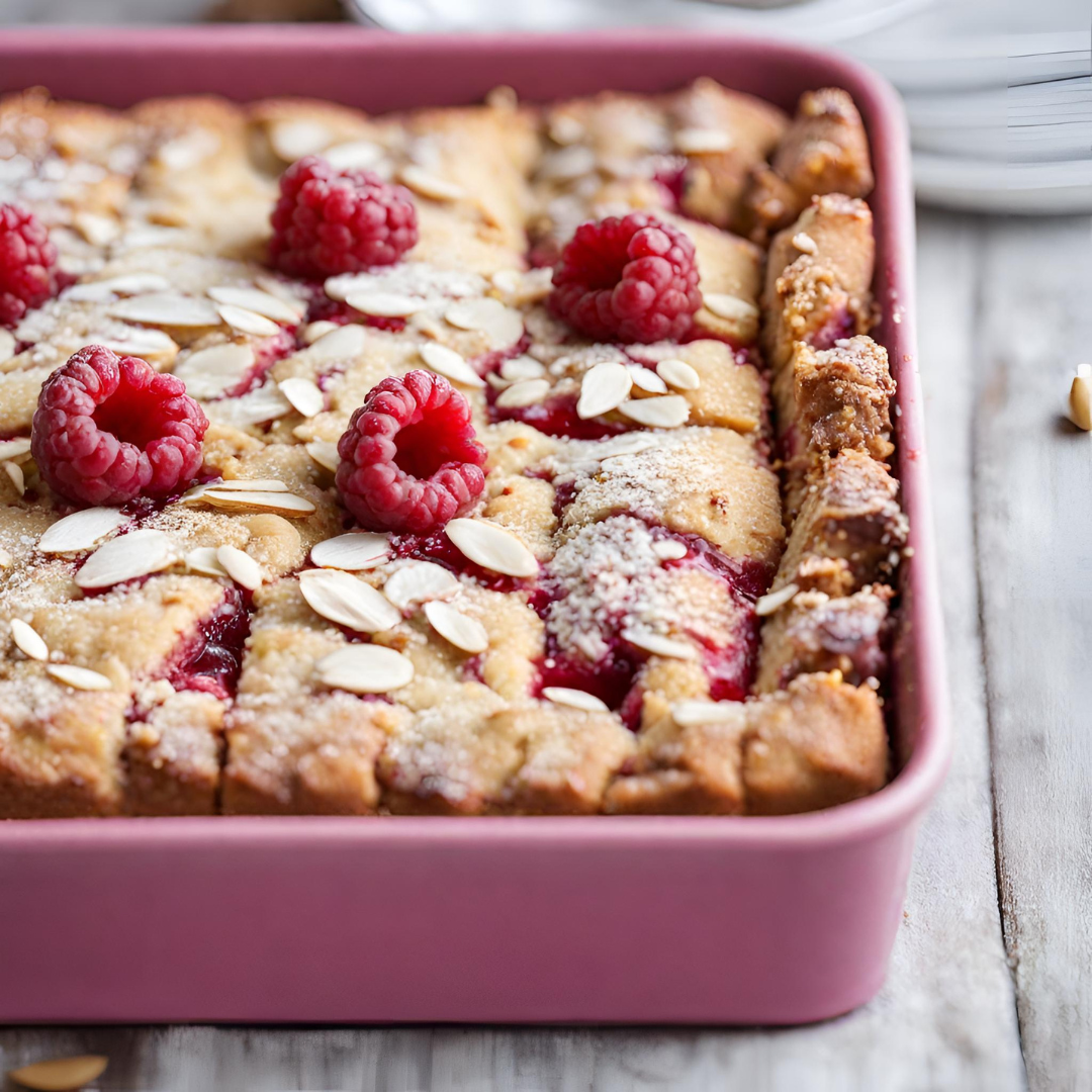 - 5Scatter the fresh raspberries over the dough, pressing them slightly into the surface.